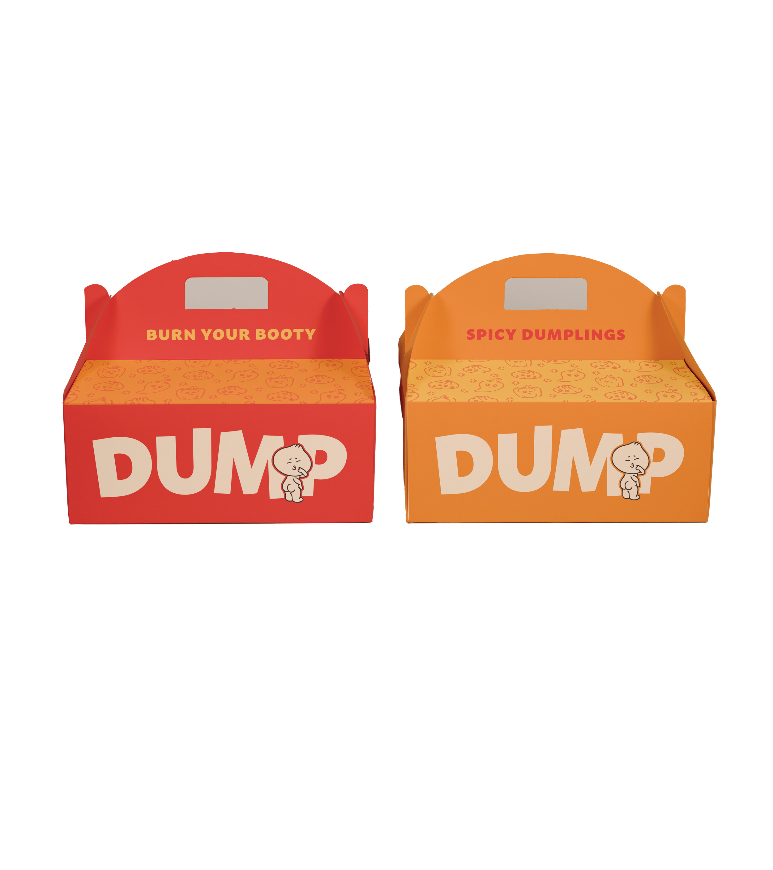 Combining these two themes creates the ultimate hot spot for dumpling lovers who also appreciate a touch of humor. During the design process, there was even a concept involving a toilet—but let’s move past that! With a fresh color palette and typography infused with Gen Z language, Dump is here to stay!